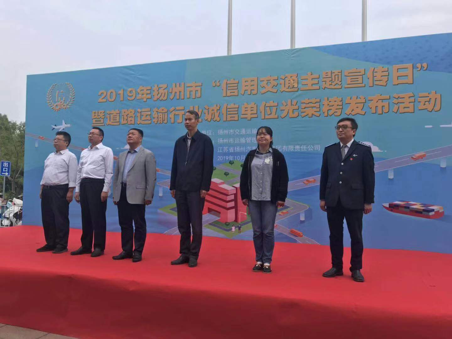 為加強(qiáng)信用信息管理,樹(shù)立交通運(yùn)輸行業(yè)誠(chéng)信標(biāo)桿,10月11日下午2:30,揚(yáng)州市“信用交通主題宣傳日”暨道路運(yùn)輸行業(yè)誠(chéng)信單位光榮榜發(fā)布活動(dòng)在西部客運(yùn)樞紐汽車(chē)站站前廣場(chǎng)舉行。