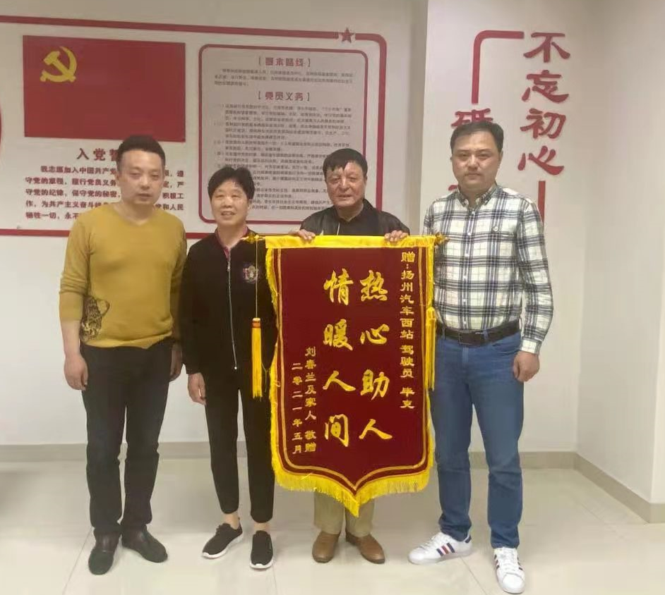 5月6日下午,張先生和劉女士風(fēng)塵仆仆的來到揚(yáng)汽定制公司,為表達(dá)對高郵健康定制線畢克師傅的謝意,老人們手捧錦旗以表感謝之情。